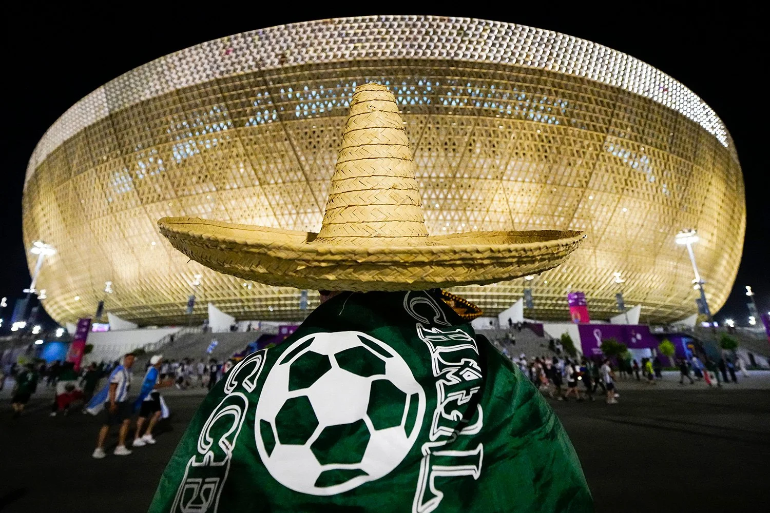 A Mexico fan wearing a sombrero walks towards the Lusail Stadium before the World Cup group C soccer match between Argentina and Mexico at the Lusail Stadium in Lusail, Qatar, Saturday, Nov. 26, 2022. (AP Photo/Pavel Golovkin)