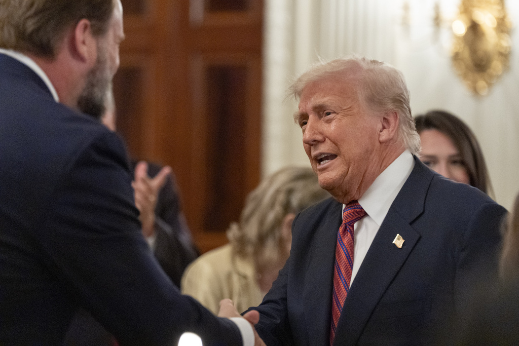 President Donald Trump arrives at a dinner for Republican senators in the State Dining Room of the White House, Friday, July 18, 2025, in Washington. (AP Photo/Alex Brandon) |