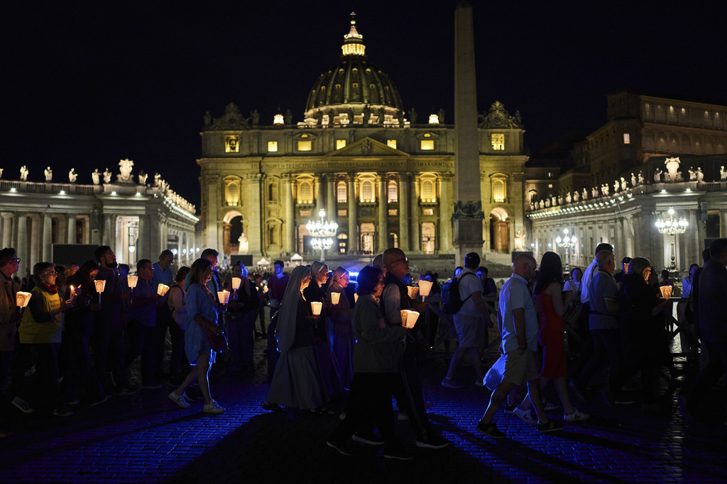 Faithful gather for a rosary prayer and a candlelight procession with the image of Mater Ecclesiae in St. Peter's Square at the Vatican, Saturday, May 3, 2025. (AP Photo/Bernat Armangue) | - On Monday, according to the White House, Trump delivers a sports announcement, signs executive orders, “welcomes home a returned Citizen” and attends a dinner for MAGA, Inc. Canadian Prime Minister Mark Carney visits Trump at the White House on Tuesday.