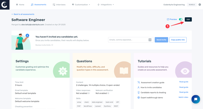 To select and assign an admin as the manager of an Assessment, first Edit any assessment.