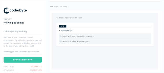 - 16 Types: Personality test that is based on the work of Carl Jung. This personality test gives insight into a candidate’s source of energy, the way they process information, how they make decisions, and the kind of lifestyle they prefer.