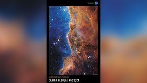 Composite image of the Carina Nebula (NGC 3324) captured by Webb’s Near-Infrared Camera (NIRCam) and Mid-Infrared Instrument (MIRI), with compass…